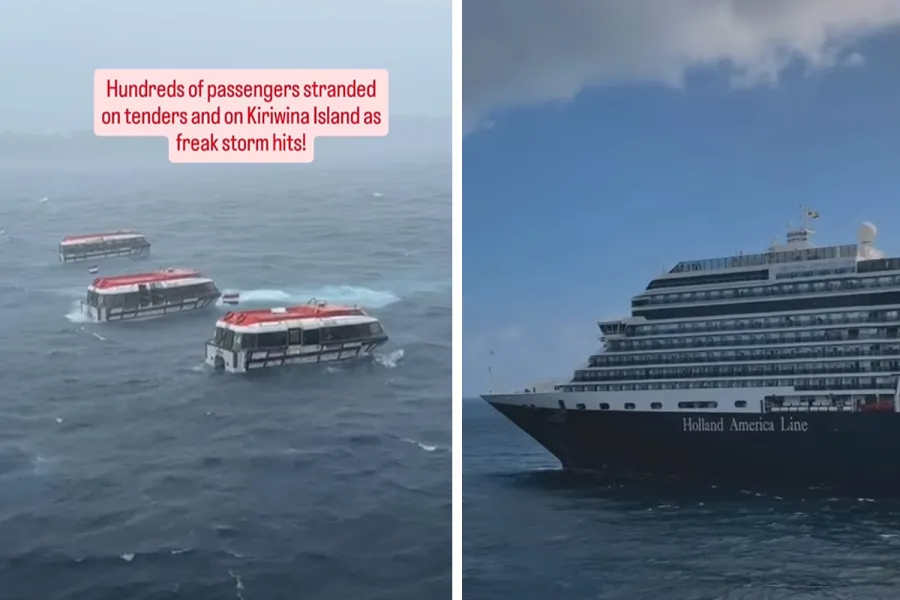 Tender boat operations on Holland America Line’s ms Noordam ran into trouble at Kiriwina Island, Papua New Guinea, after a sudden 40-knot squall made conditions unsafe for guests, Facebook page Paul and Carole Love To Travel reported.