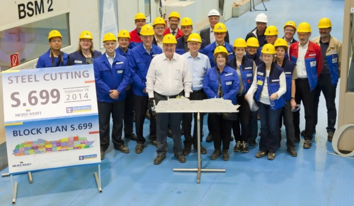 The steel cutting for Ovation of the Seas, scheduled to be delivered in the autumn of 2016, took place at the Meyer Werft shipyard in Papenburg, Germany, where Quantum of the Seas, Anthem of the Seas and now Ovation of the Seas are being built.
