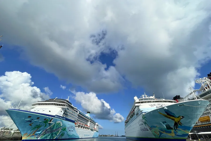 The cruise line shared that Margaritaville at Sea Islander and Margaritaville at Sea Paradise were docked side by side at the Nassau Cruise Port, calling it a historic meetup and a celebration at sea.