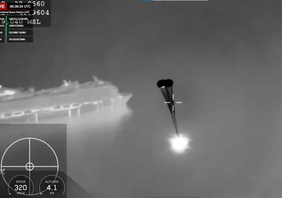 Cruise Ship Appears in Live Footage as SpaceX Crew-11 Descends for Splashdown