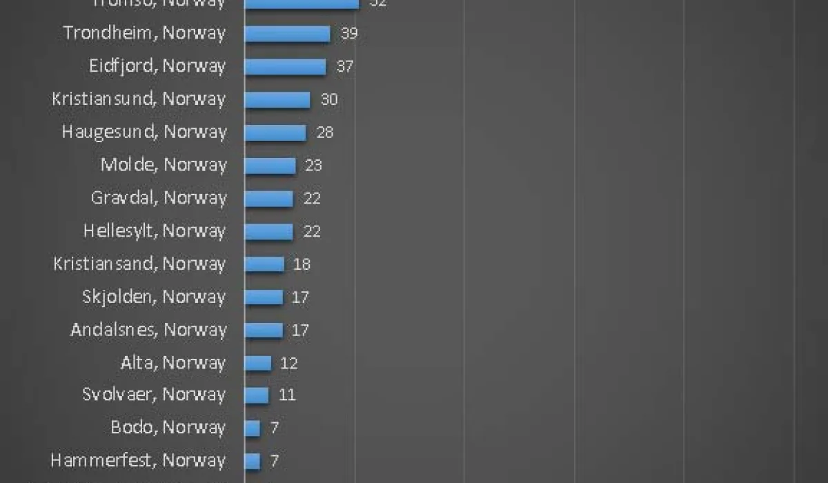 The following analysis shows how many cruise ships will arrive in ports in Norway in 2017. Divided into three categories the presented charts give a graphic presentation of how many cruise stops are expected in each Norwegian port, which cruise ships will be deployed in Norway, and the cruise lines with most cruise arrivals for the entire 2017. Please note, this is unofficial analysis, intended for informative use only. Data used to create cruise industry trends is combined by the major cruise lines itineraries and can be subject to change