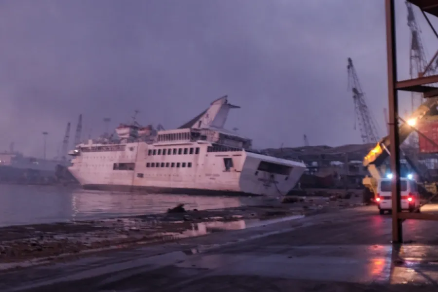 The news agency Al Jazeera reports that a man in the all-white uniform of a ship crew, stained with blood, wandered near the explosion site. The interior was blown out, and the ship was listing heavily onto the quayside.