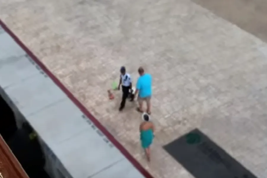 A Man forgot his cell phone on the tour bus. His pal decides to throw the phone while the cruise ship was pulling away from the pier. He had an idea to throw it to someone on the cruise ship balcony, but his lack of skills ended the cell phone in the sea.