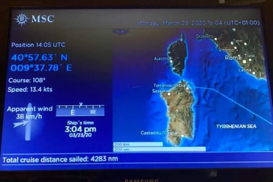 Update March 26: The crew member was tested again and this time she tested positive for COVID-19. Now around 16 crew are in isolation under quarantine, under observation for any signs, for now, none of them are showing any symptoms. The ship is heading to Genoa, Italy. The captain announced that the crew will disembark soon but there is no sign-off list yet, they are expecting more updates by tomorrow.