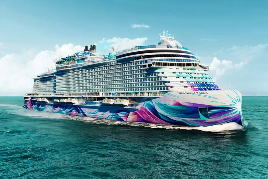 In its announcement, NCL said Norwegian Aura will be nearly 1,130 feet long and around 168,000 gross tons, carrying 3,840 guests at double occupancy—about 10% larger than Norwegian Aqua and Norwegian Luna.