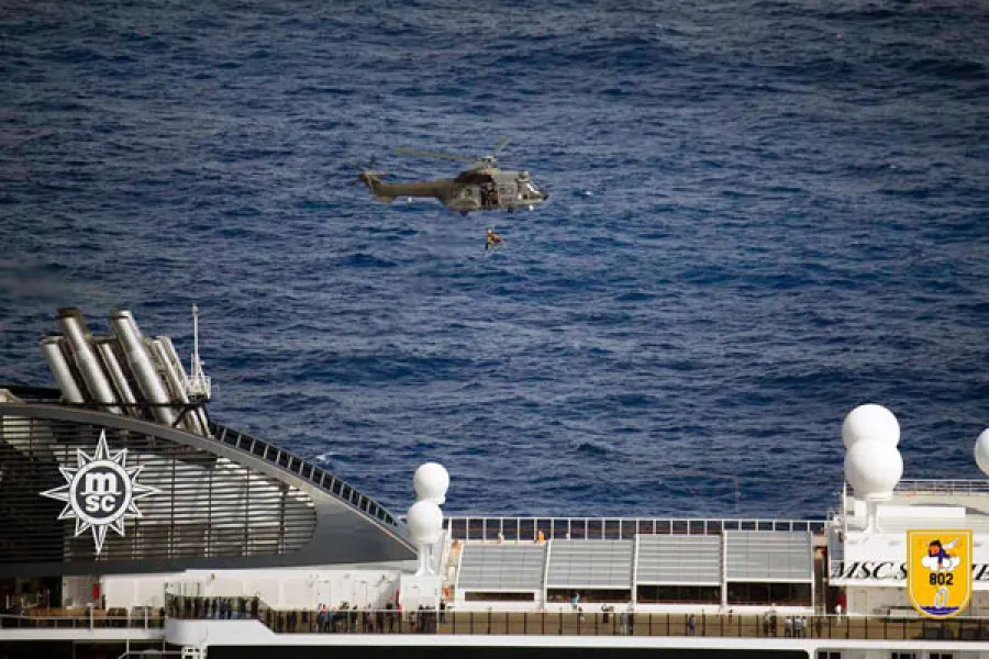 The Spanish search and rescue agency Salvamento Maritimo performed a remarkable evacuation of a Brazilian woman who was in labor on a cruise ship in the middle of the Atlantic Ocean. After experiencing contractions and almost giving birth on board MCS Seaview the woman was airlifted from the vessel some 400 miles of the coast of Gran Canaria on Monday, April 8, 2019. Ships officers’ immediately contacted Gran Canaria Rescue Center watchstanders, responding with one helicopter SuperPuma and airplane AirbusHeli to the scene.