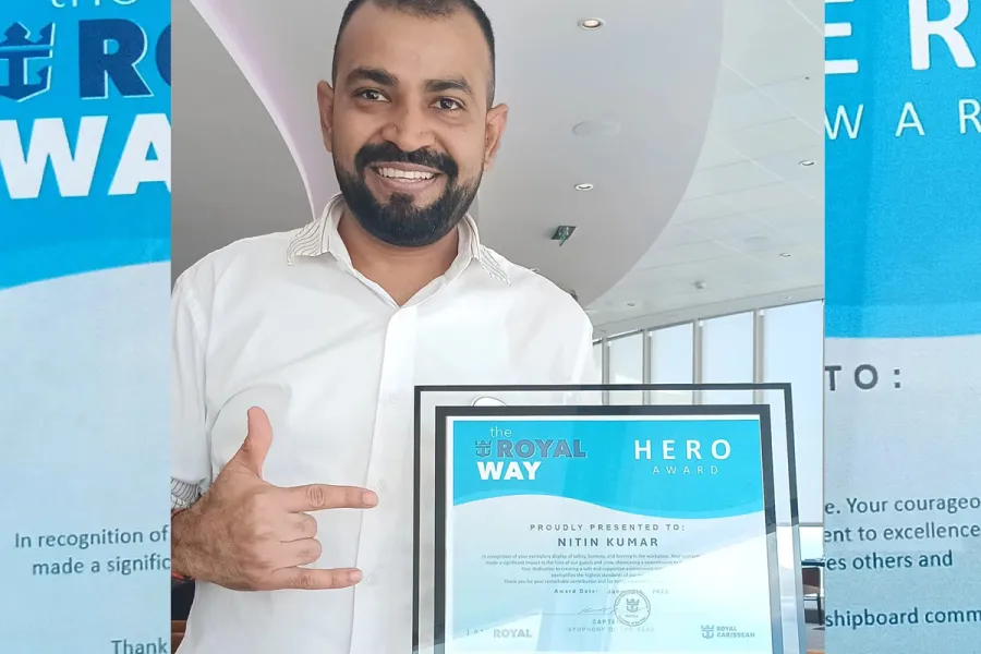 Royal Caribbean crew member Nitin Kumar has been honored with the Hero Award for his brave actions that helped protect guests from serious harm.
