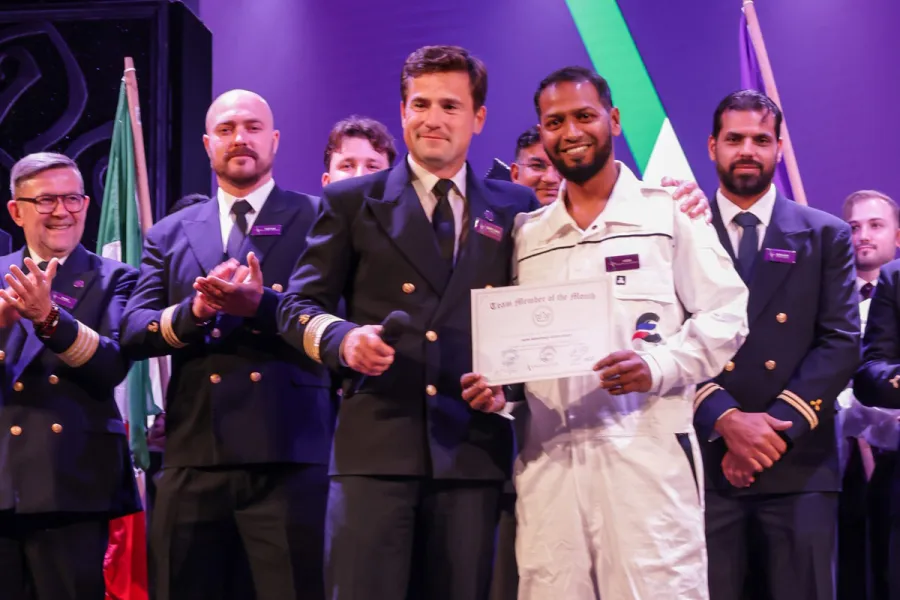Anne Boddin, an Insight Host, and Moin Mohammed, an Assistant Electrician, were recognized for their dedication and contributions to the onboard experience. Anne was praised for her creativity, enthusiasm, and commitment to delivering memorable moments for guests, while Moin was recognized for his technical expertise, reliability, and vital role in maintaining smooth operations behind the scenes.