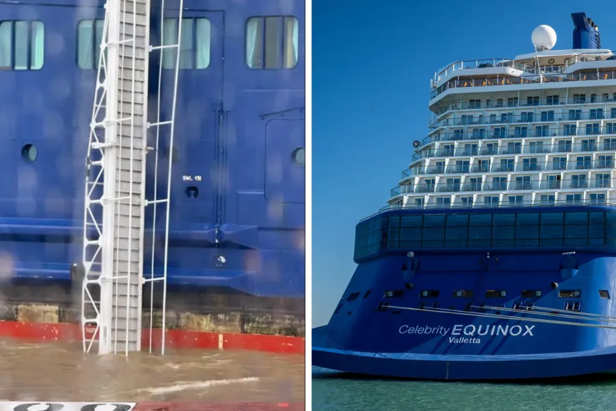 Mooring lines on Celebrity Equinox snapped during embarkation in Buenos Aires, Argentina, on December 20, causing the ship to drift away from the pier amid strong winds. The incident led to a temporary halt in boarding after the gangway fell into the water.