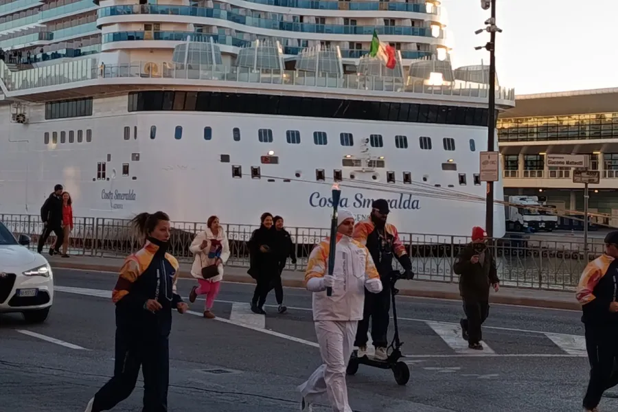 As part of a nationwide Olympic Torch Relay celebrating the countdown to the Winter Games, the flame moved through Savona just meters from the port where Costa Smeralda was docked. Flying the Italian flag, the LNG-powered cruise ship became an unexpected yet powerful symbol of national pride.