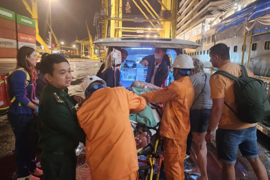The ship was sailing off the coast of Vietnam when a 68-year-old German passenger fell down a stairway, local media reports. The ship’s doctor provided immediate first aid, but the passenger was found to be in critical condition, with suspected internal bleeding and possible spleen injury.